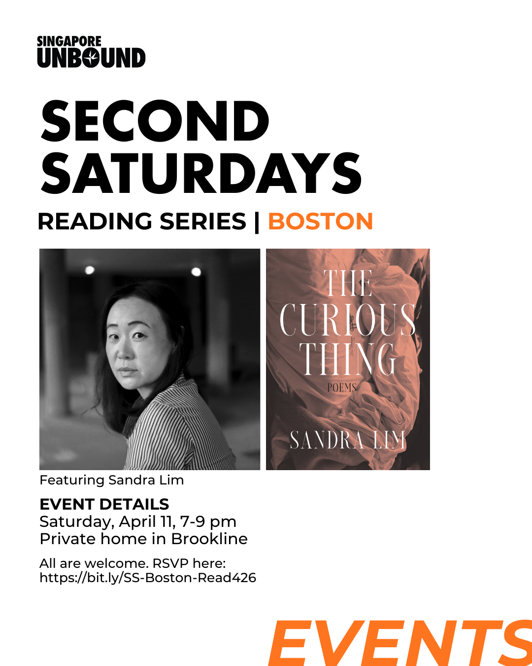 We are so very excited to launch the Boston chapter of our beloved Second Saturdays Reading Series! The inaugural reading will feature Sandra Lim, author of poetry collection The Curious Thing (W.W. Norton, 2021). Truthful, sensuous, and intellectually relentless, the poems in this volume are compelling meditations on love, art making, solitude, female fate, and both the mundane and serious principles of life.